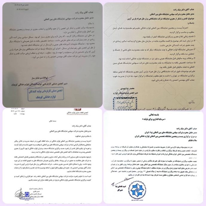 نامه چهار انجمن حوزه لوازم خانگی به مدیرعامل شرکت نمایشگاهی چهار انجمن حوزه لوازم خانگی از جمله انجمن تولیدکنندگان، انجمن صوتیتصویری، انجمن لوازم خانگی کوچک و […]