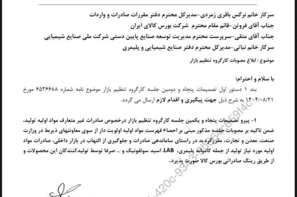 تصمیمات جدید کارگروه تنظیم بازار برای جلوگیری از صادرات غیرمتعارف مواد اولیه تولید